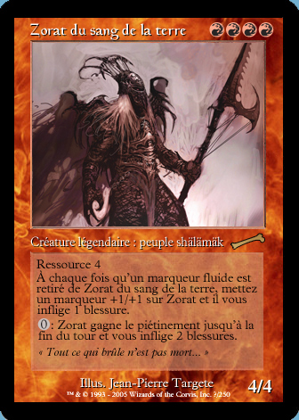 C'est donc une créature qui grossit au fur et à mesure qu'elle attaque jusqu'à pouvoir devenir une 8/8, mais qui en contrepartie fait mal à son contrôleur.