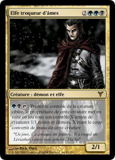 Capa: Une capa assez simple et originale a la fois, car elle permet de prendre le controle d'une créature, sa prend en compte des X etc