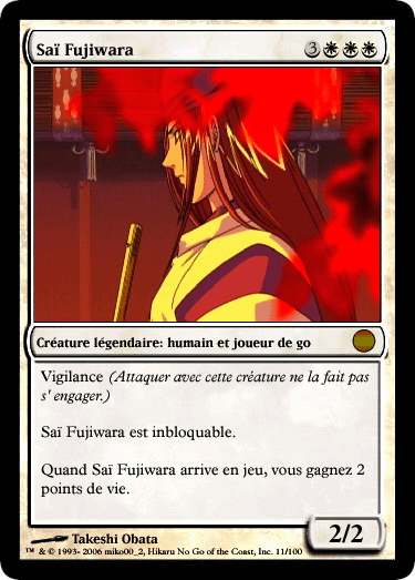la capa est forte, mais je pense que cette carte a un coût de manas assez elevé, juste comme y faut pour pas qu' elle soit trop puissante, ni qu' elle ne soit un grosse merd¤...pour le type, la creature est legendairre car saï est un, joueur de GO legendaire