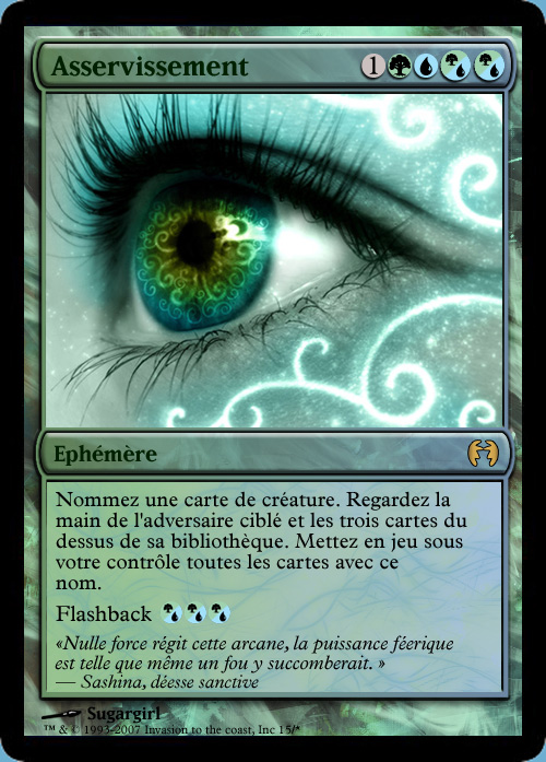 La vraie force de la carte est dans son flashback, défausser dans les premier tour son effet est dévastateur, d'où un cout pas mal élevé (1GU G/U G/U)![]()