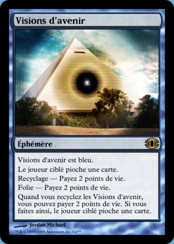 Quand vous recyclez les Visions d'avenir, vous pouvez payer 2 points de vie. Si vous faites ainsi, le joueur ciblé pioche une carte.