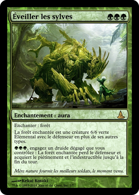 La forêt enchantée est une créature verte 6/6 élémental avec le défenseur. C'est toujours un terrain.
