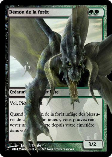 Quand le démon de la forêt inflige des blessures de combat à un joueur, vous pouvez renvoyer un carte verte depuis votre cimetière dans votre main.