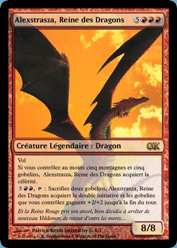 Voici ma 2eme Fun Card (Real Card) comme promis, après celle de Voldemor le dragon noir (que vous pouvez voir ici : http://www.magiccorporation.com/modules.php?name=FunCards&file=viewcard&num=9432) voici Alexstrasza, la Reine des Dragons.
