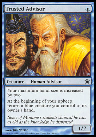 Votre taille de main maximale est augmentée de deux. Au début de votre entretien, renvoyez une créature bleue que vous contrôlez dans la main de son propriétaire.
