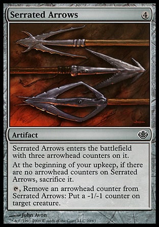 , Remove an arrowhead counter from Serrated Arrows: Put a -1/-1 counter on target creature.