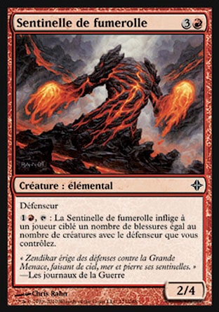: La Sentinelle de fumerolle inflige au joueur ciblé un nombre de blessures égal au nombre de créatures avec le défenseur que vous contrôlez.Vous n'êtes pas connecté ! connectez-vous ou inscrivez-vous pour poster un commentaire