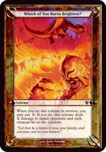 . If you do,this scheme deals X damage to target opponent and each creature he or she controls.