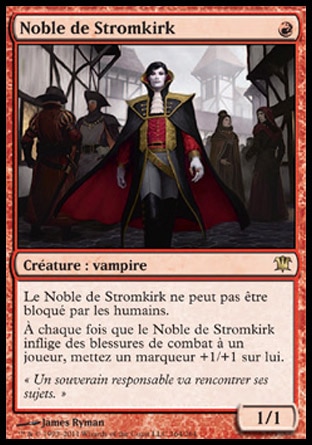 À chaque fois que le Noble de Stromkirk inflige des blessures de combat à un joueur, mettez un marqueur +1/+1 sur lui.