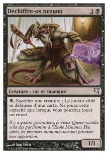 , sacrifiez une créature : Le joueur ciblé se défausse d'une carte. N'activez cette capacité que lorsque vous pourriez lancer un rituel.Vous n'êtes pas connecté ! connectez-vous ou inscrivez-vous pour poster un commentaire