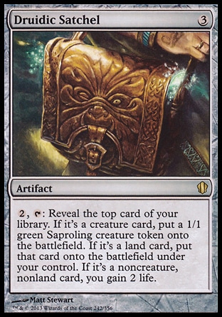 : Reveal the top card of your library. If it's a creature card, put a 1/1 green Saproling creature token onto the battlefield. If it's a land card, put that card onto the battlefield under your control. If it's a noncreature, nonland card, you gain 2 life.