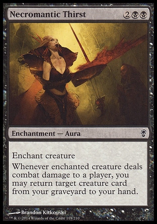 À chaque fois que la créature enchantée inflige des blessures de combat à un joueur, vous pouvez renvoyer la carte de créature ciblée depuis votre cimetière dans votre main.
