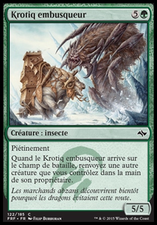 Quand le Krotiq embusqueur arrive sur le champ de bataille, renvoyez une autre créature que vous contrôlez dans la main de son propriétaire.