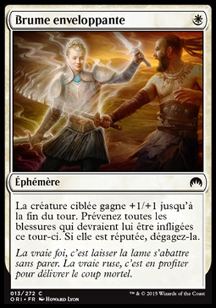 La créature ciblée gagne +1/+1 jusqu'à la fin du tour. Prévenez toutes les blessures qui devraient lui être infligées ce tour-ci. Si elle est réputée, dégagez-la.