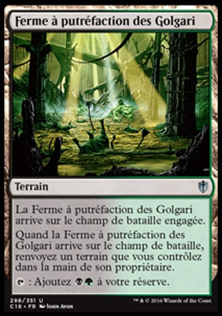 Quand la Ferme à putréfaction des Golgari arrive sur le champ de bataille, renvoyez un terrain que vous contrôlez dans la main de son propriétaire. : Ajoutez à votre réserve.