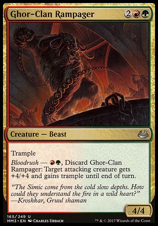 Bloodrush - , Discard Ghor-Clan Rampager: Target attacking creature gets +4/+4 and gains trample until end of turn.