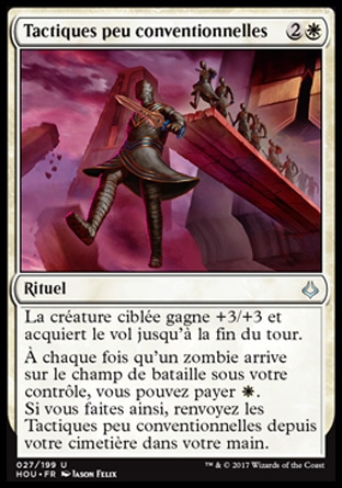 . Si vous faites ainsi, renvoyez les Tactiques peu conventionnelles depuis votre cimetière dans votre main.