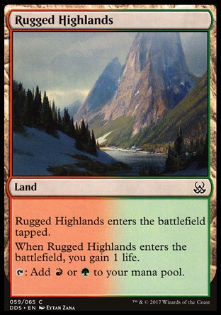 When Rugged Highlands enters the battlefield, you gain 1 life. : Add or to your mana pool.