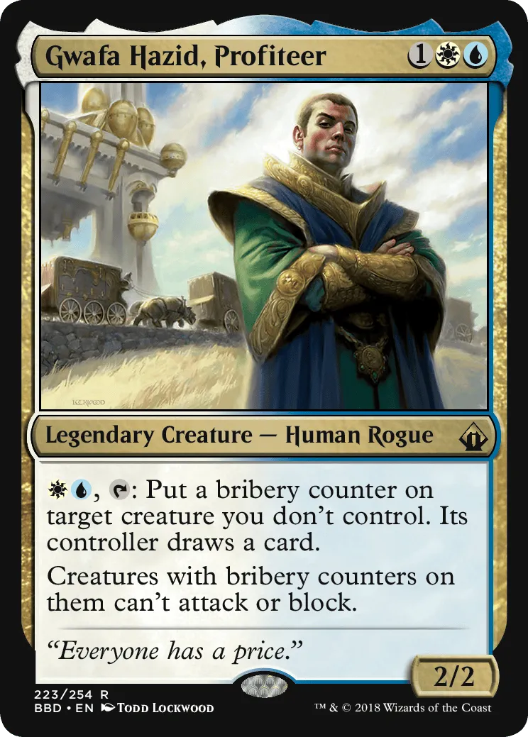 , : Mettez un marqueur « pot-de-vin » sur une créature ciblée que vous ne contrôlez pas. Son contrôleur pioche une carte.
