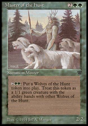 : Put a 1/1 green Wolf creature token named Wolves of the Hunt onto the battlefield. It has "bands with other creatures named Wolves of the Hunt.".