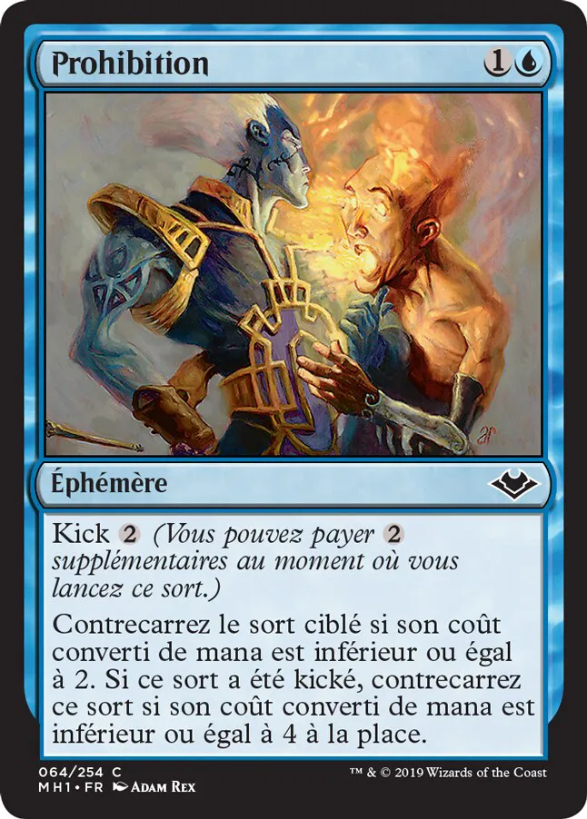 Contrecarrez le sort ciblé si son coût converti de mana est de 2 ou moins. Si ce sort a été kické, contrecarrez ce sort si son coût converti de mana est inférieur ou égal à 4 à la place.