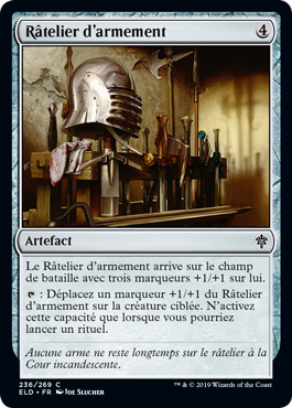 : Déplacez un marqueur +1/+1 du Râtelier d'armement sur la créature ciblée. N'activez cette capacité que lorsque vous pourriez lancer un rituel.