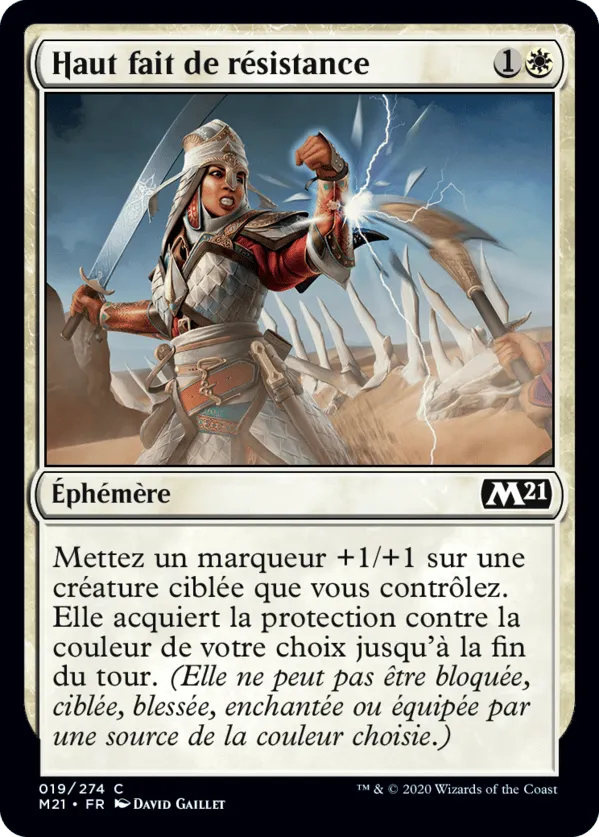 Mettez un marqueur +1/+1 sur la créature ciblée que vous contrôlez. Elle acquiert la protection contre la couleur de votre choix jusqu'à la fin du tour.