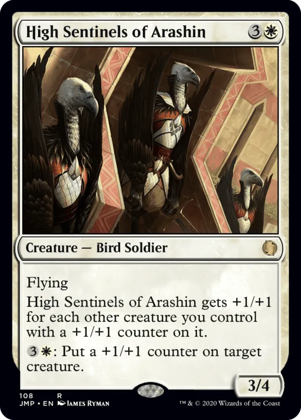 High Sentinels of Arashin gets +1/+1 for each other creature you control with a +1/+1 counter on it. : Put a +1/+1 counter on target creature.