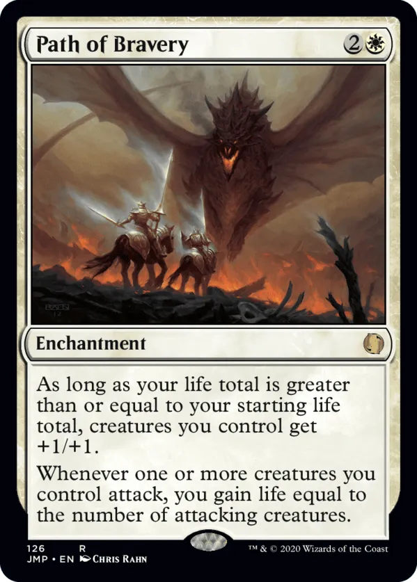 Tant que votre total de points de vie est supérieur ou égal à votre total de points de vie de départ, les créatures que vous contrôlez gagnent +1/+1.