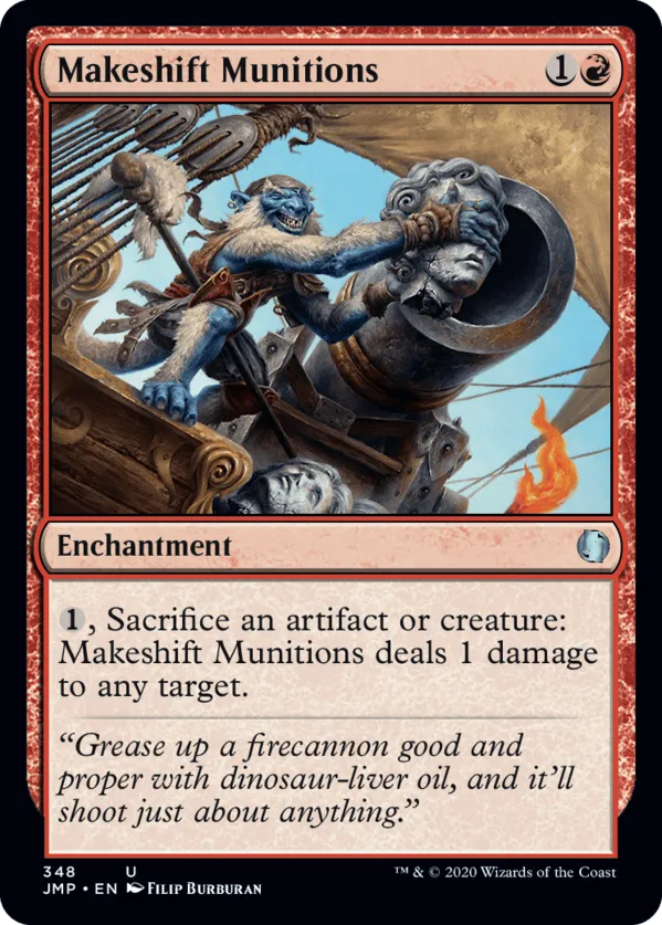 , sacrifiez un artefact ou une créature : Les Munitions improvisées infligent 1 blessure à n'importe quelle cible.