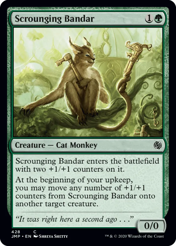 Le Bandar fouineur arrive sur le champ de bataille avec deux marqueurs +1/+1 sur lui.