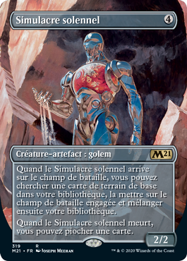 When Solemn Simulacrum enters the battlefield, you may search your library for a basic land card, put that card onto the battlefield tapped, then shuffle your library.