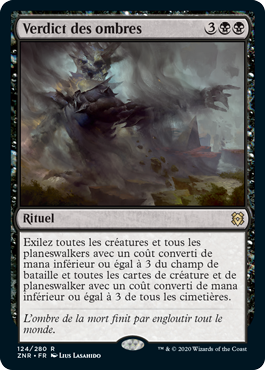 Exilez toutes les créatures et tous les planeswalkers avec un coût converti de mana inférieur ou égal à 3 du champ de bataille et toutes les cartes de créature et de planeswalker avec un coût converti de mana inférieur ou égal à 3 de tous les cimetières.