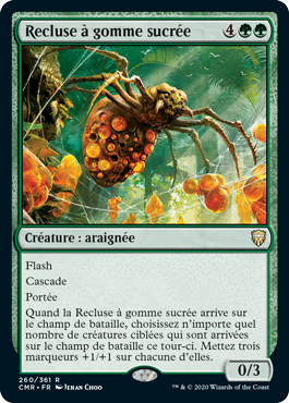 Quand la Recluse à gomme sucrée arrive sur le champ de bataille, choisissez n'importe quel nombre de créatures ciblées qui sont arrivées sur le champ de bataille ce tour-ci. Mettez trois marqueurs +1/+1 sur chacune d'elles.