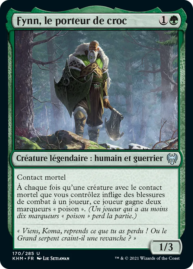 À chaque fois qu'une créature avec le contact mortel que vous contrôlez inflige des blessures de combat à un joueur, ce joueur gagne deux marqueurs "poison". (Un joueur qui a au moins dix marqueurs "poison" perd la partie.).