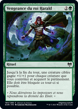 Jusqu'à la fin du tour, une créature ciblée gagne +1/+1 pour chaque créature que vous contrôlez et acquiert le piétinement. Elle doit être bloquée ce tour-ci si possible.