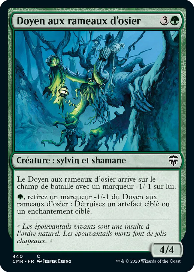 , retirez un marqueur -1/-1 du Doyen aux rameaux d'osier : Détruisez un artefact ciblé ou un enchantement ciblé.