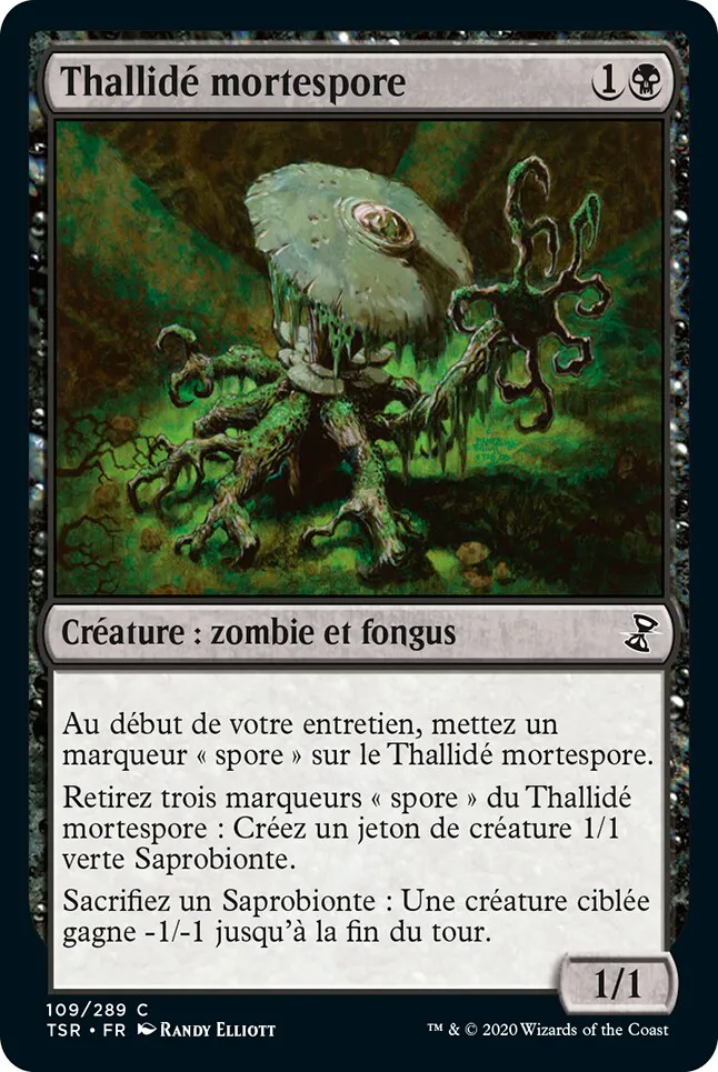 Retirez trois marqueurs "spore" du Thallidé mortespore : Créez un jeton de créature 1/1 verte Saprobionte.