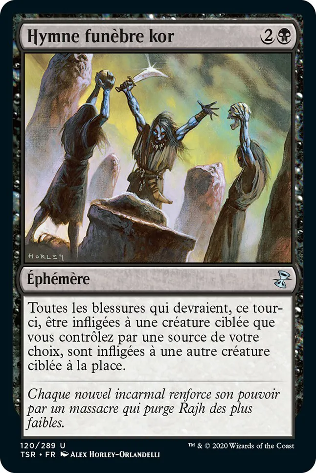 Toutes les blessures qui devraient, ce tour-ci, être infligées à une créature ciblée que vous contrôlez par une source de votre choix, sont infligées à une autre créature ciblée à la place.
