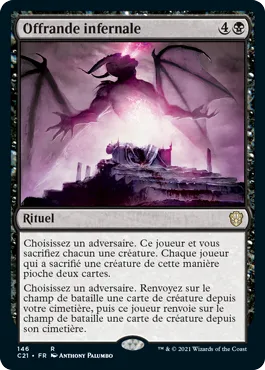 Choisissez un adversaire. Ce joueur et vous sacrifiez chacun une créature. Chaque joueur qui a sacrifié une créature de cette manière pioche deux cartes.