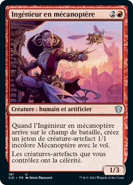 Quand l'Ingénieur en mécanoptère arrive sur le champ de bataille, créez un jeton de créature-artefact 1/1 incolore Mécanoptère avec le vol.