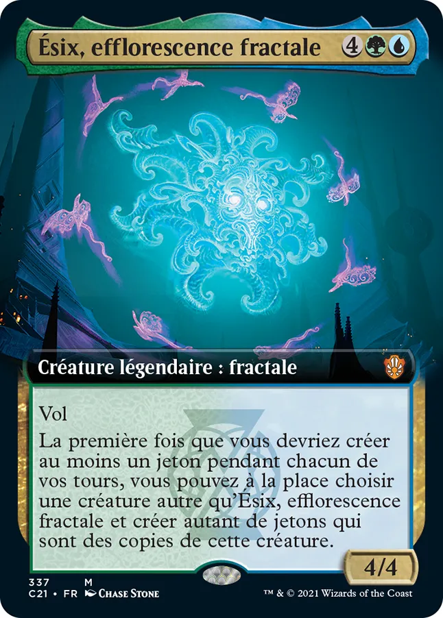 La première fois que vous devriez créer au moins un jeton pendant chacun de vos tours, vous pouvez à la place choisir une créature autre qu'Ésix, efflorescence fractale et créer autant de jetons qui sont des copies de cette créature.