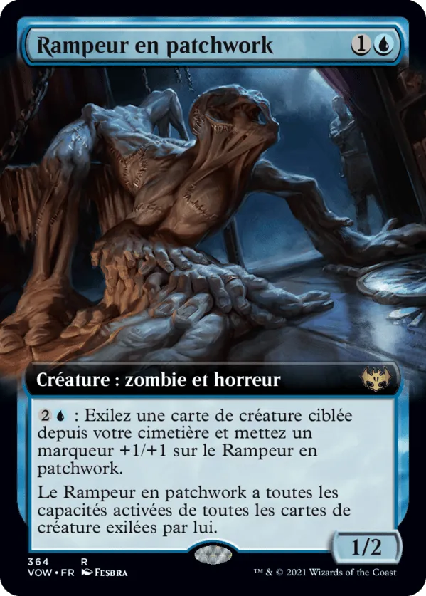 : Exilez une carte de créature ciblée depuis votre cimetière et mettez un marqueur +1/+1 sur le Rampeur en patchwork.Vous n'êtes pas connecté ! connectez-vous ou inscrivez-vous pour poster un commentaire