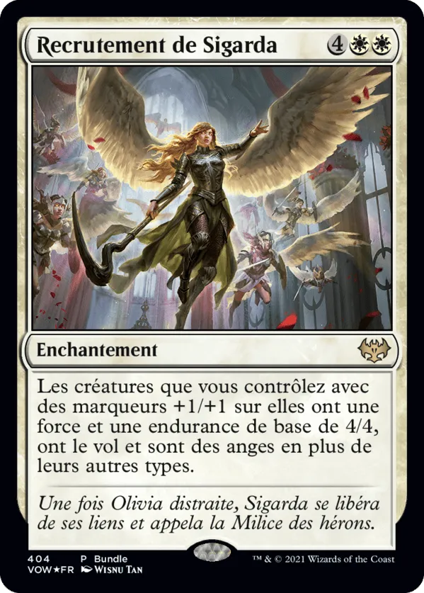 Les créatures que vous contrôlez avec des marqueurs +1/+1 sur elles ont une force et une endurance de base de 4/4, ont le vol et sont des anges en plus de leurs autres types.