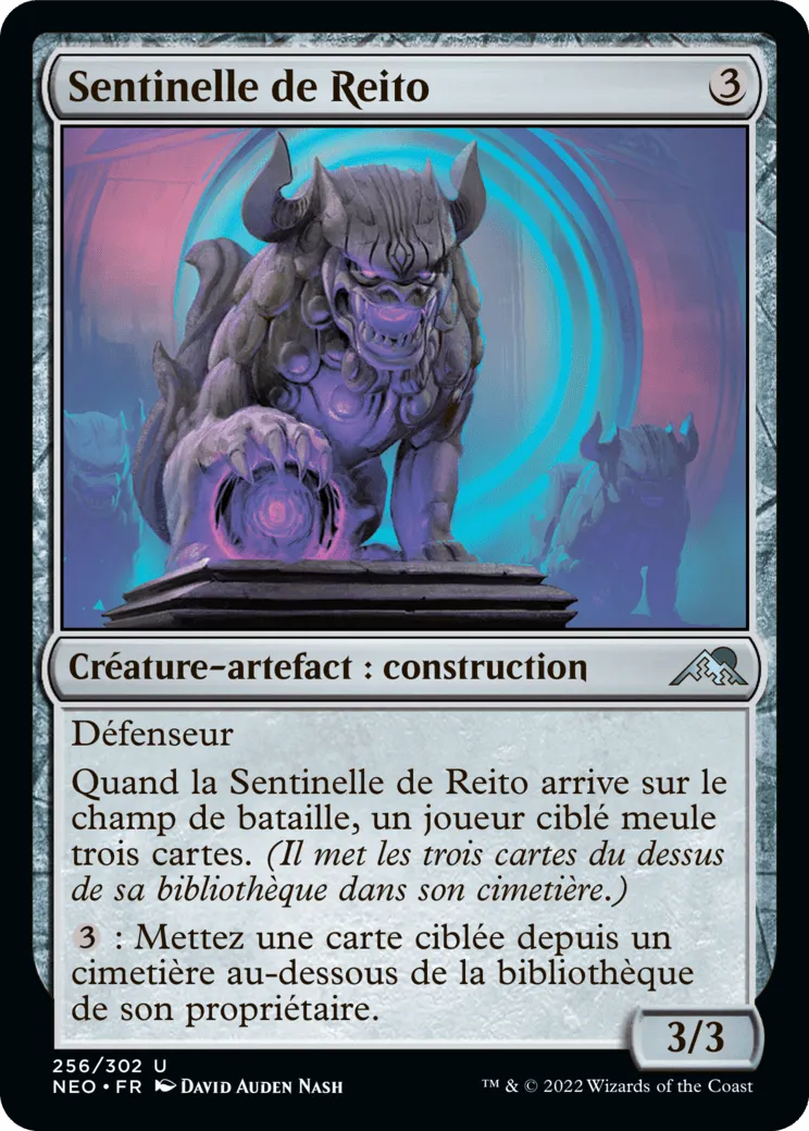 Quand la Sentinelle de Reito arrive sur le champ de bataille, un joueur ciblé meule trois cartes.