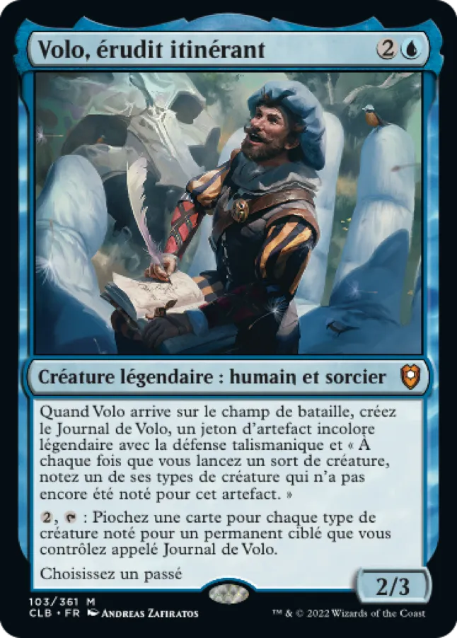 : Piochez une carte pour chaque type de créature noté pour un permanent ciblé que vous contrôlez appelé Journal de Volo.