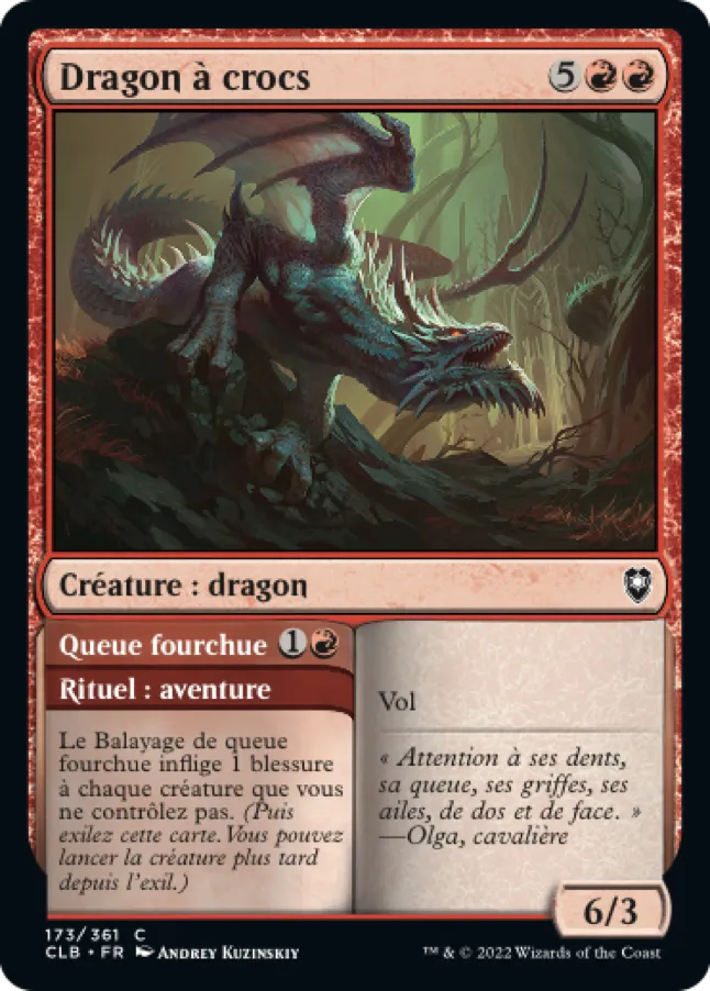 Le balayage de queue fourchue inflige 1 blessure à chaque créature que vous ne contrôlez pas. (Puis exilez cette carte. Vous pouvez lancer la créature plus tard depuis l'exil.).