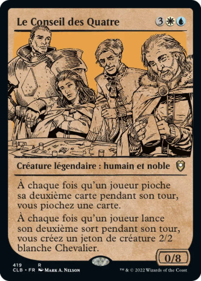 À chaque fois qu'un joueur lance son deuxième sort pendant son tour, vous créez un jeton de créature 2/2 blanche Chevalier.