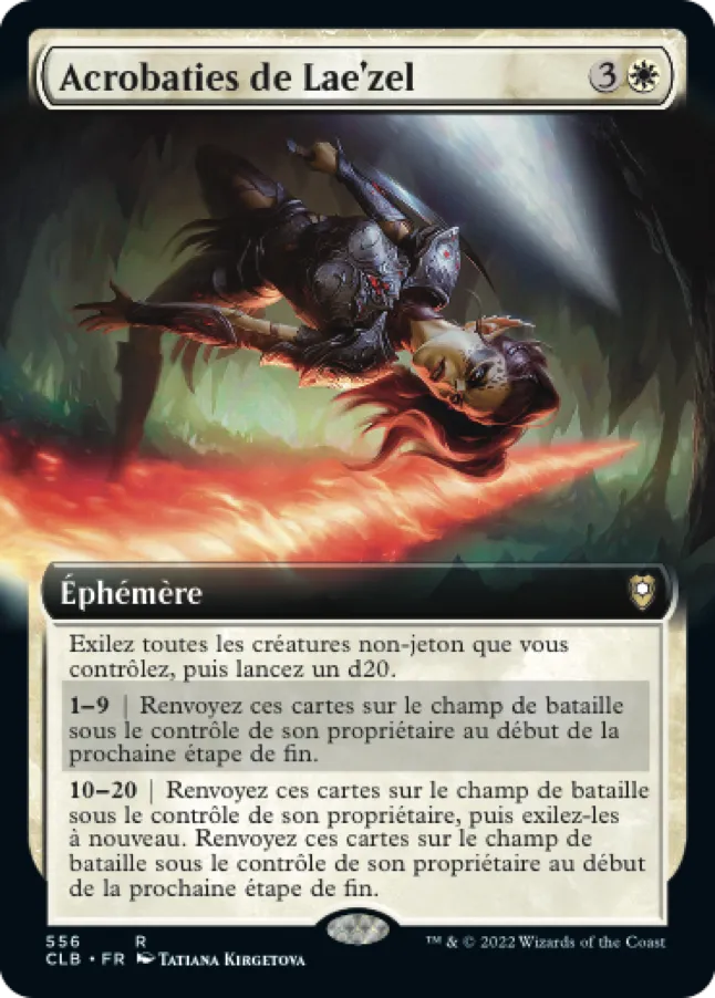 10-20 | Renvoyez ces cartes sur le champ de bataille sous le contrôle de son propriétaire, puis exilez-la à nouveau. Renvoyez ces cartes sur le champ de bataille sous le contrôle de son propriétaire au début de la prochaine étape de fin.