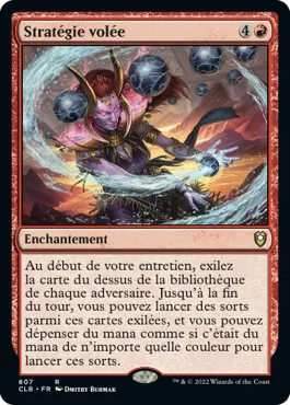 Au début de votre entretien, exilez la carte du dessus de la bibliothèque de chaque adversaire. Jusqu'à la fin du tour, vous pouvez lancer des sorts parmi ces cartes exilées et vous pouvez dépenser du mana comme si c'était du mana de n'importe quelle couleur pour lancer ces sorts.